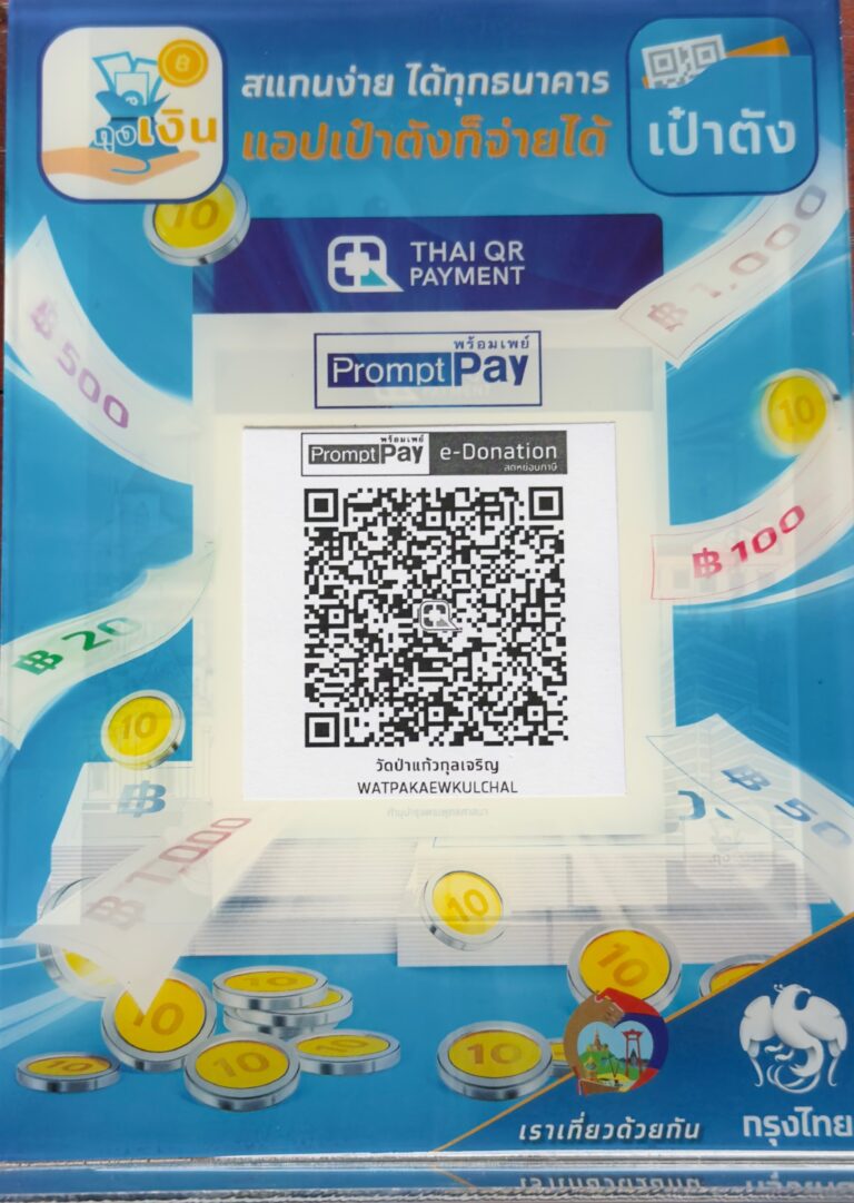 ร่วมบุญได้ที่ ชื่อบัญชี วัดป่าแก้วกุลเจริญ ธ.กรุงไทยฯ สาขาทองผาภูมิ เลขที่ 718-0-48331-1