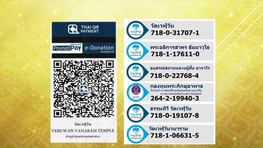 ร่วมบุญได้ที่ บัญชีวัดเวฬุวัน ธ.กรุงไทยฯ เลขที่ 718-0-31707-1